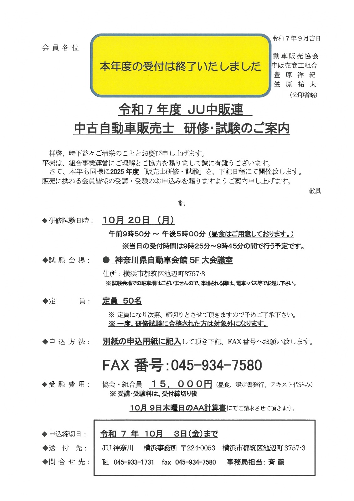 ※令和7年度の「中古自動車販売士研修試験」の受付は終了いたしました。