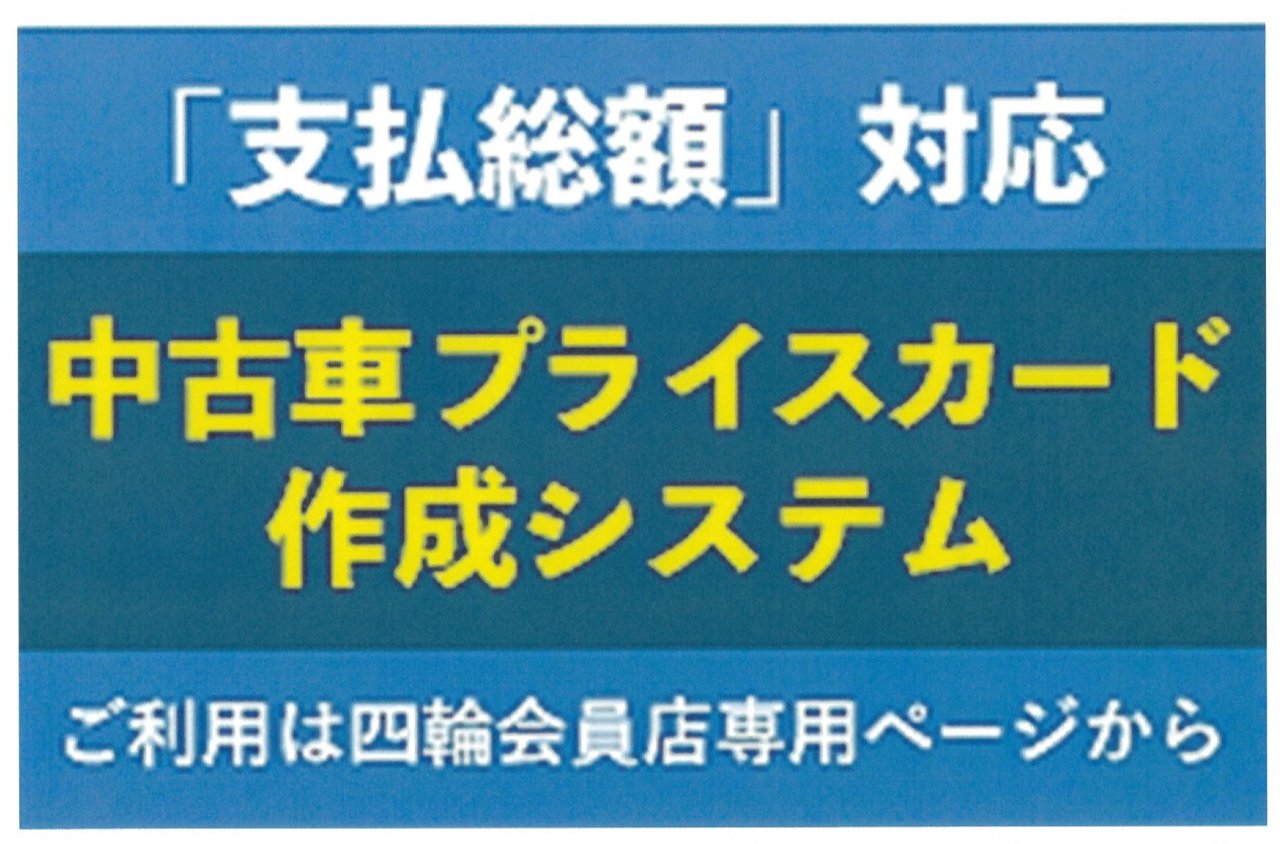中古車の販売価格(「支払総額」)の表示に関する改正規約・同施行規則に対応したプライスカードが作成できますのでご活用ください。