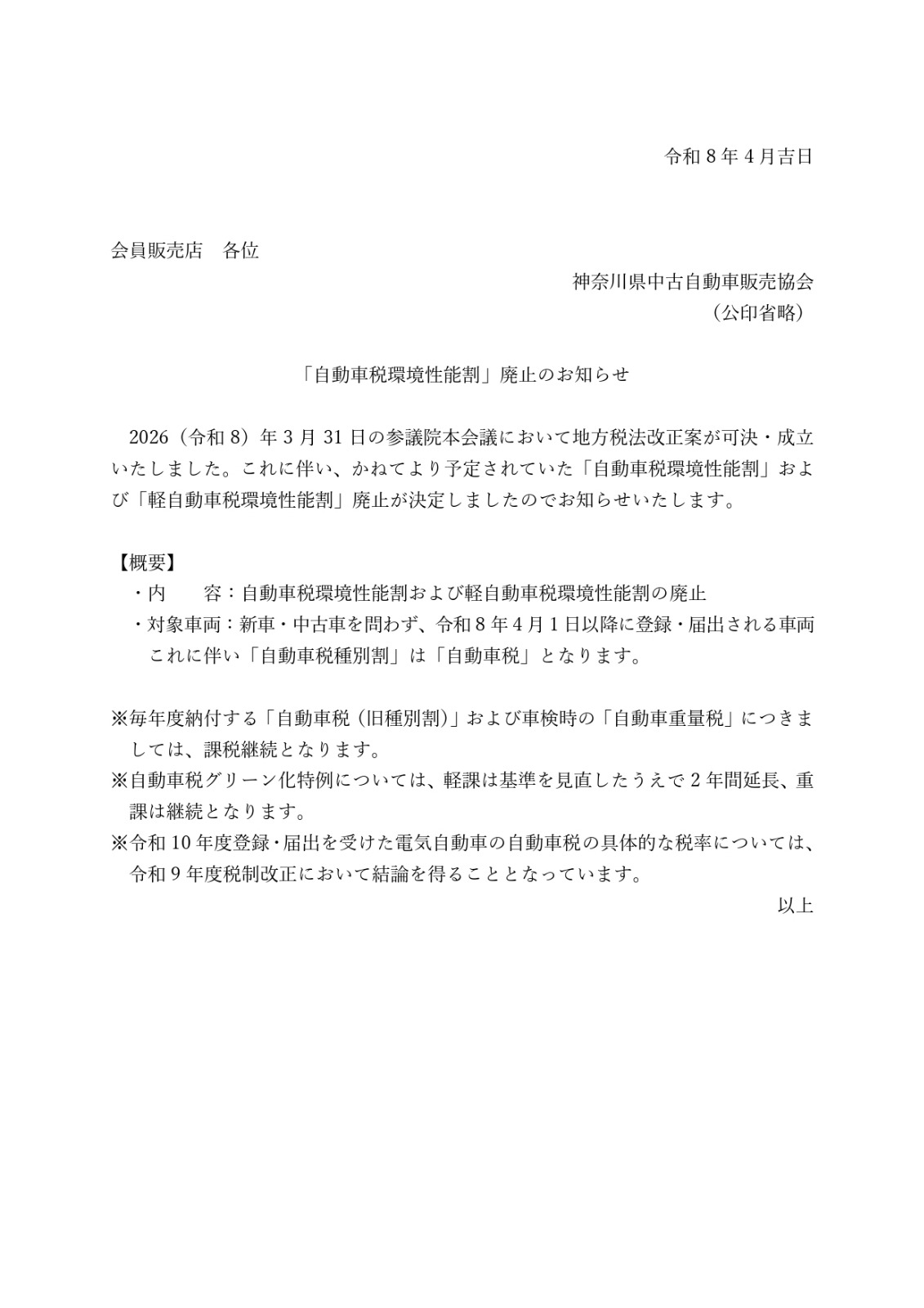 「自動車税環境性能割」廃止についてお知らせします。